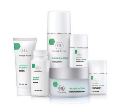The DOUBLE ACTION line acts to balance the activity of the sebaceous glands, reduce sebum excretion, and prevent an