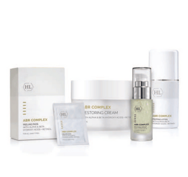 The ABR COMPLEX line acts to regenerate, rehabilitate and lighten the skin using an active combination of Alpha and Beta Hydroxy Acids and Retinol. The products significantly accelerate skin regeneration and act to reduce the depth of wrinkles, improve texture and elasticity, and increase skin moisture.
