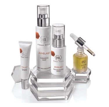 JUVELAST line acts to repair and nourish dry skin. The line is based on copper peptide, DNA repair enzyme, ceramides and hyaluronic acid. The products significantly improve skin elasticity and texture, reduce wrinkles and signs of skin aging.