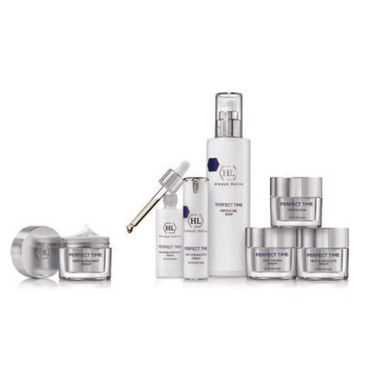 PERFECT TIME line acts to firm, lift and smoothen the facial skin and contour lines of the face, neck and décolleté. The line is based on high quality ingredients, innovative lipopeptides and essential amino acids.