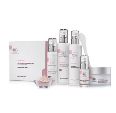 The VITALISE line works to restore skin’s moisture, reduce the appearance of fine lines and revitalize the complexion. The line, based on active concentrations of Hyaluronic Acid, an excellent moisturizer and vitamins A, C & E, helps retain moisture, optimizes the integrity of the skin barrier, improves suppleness, firms and plums texture, grants radiant, silky smooth skin.